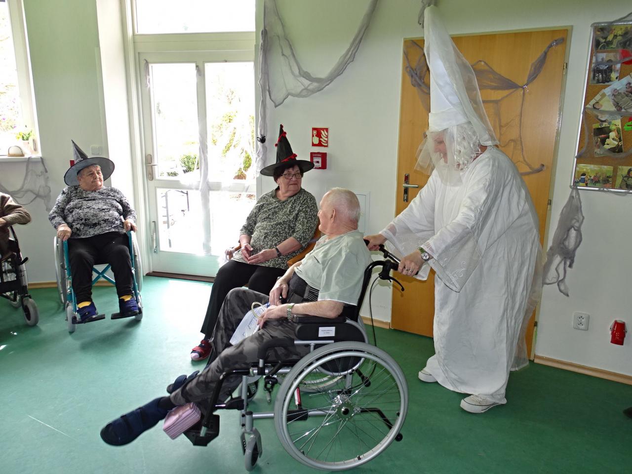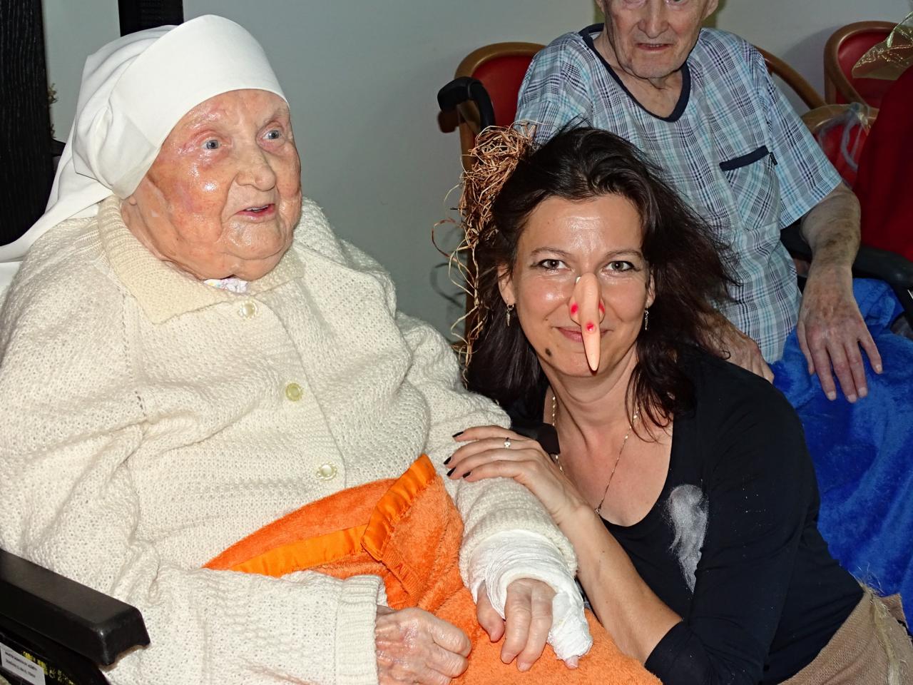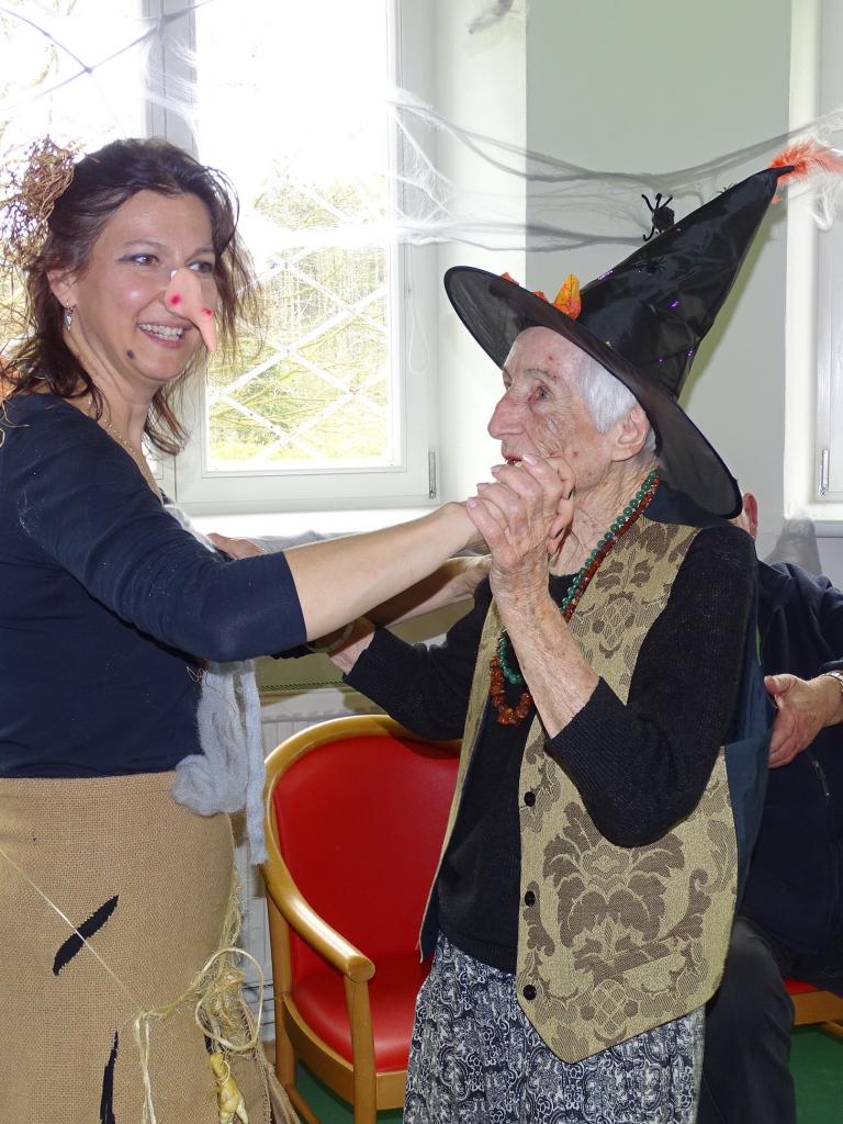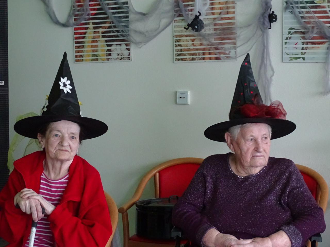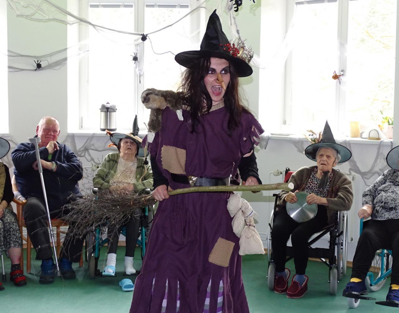 Téměř všechni přítomní měli čarodějnické klobouky, které si k této příležitosti nazdobili. Kdo klobouk neměl, mohl si klobouk vypůjčit - ať už zdobený či ne. K tanci a poslechu nám hrál pan Hofírek na harmoniku a mezitím náš pan údržbář opékal párky, na kterých jsme si společně opravdu pochutnali. Kdo se akce nemohl či nechtěl zúčastnit, dostal opečený párek na pokoj. Na závěr jsme si zatančili "kočičí tanec".