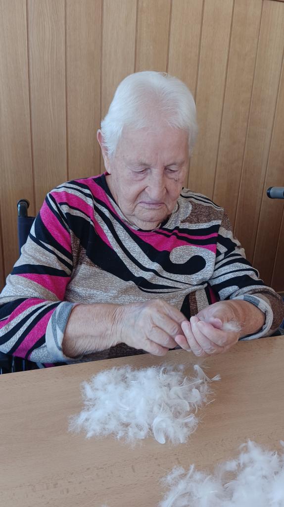 V pondělí 20. října jsme si připomněli starý lidový zvyk draní peří. Tuto dopolední aktivitu si pro nás připravila dobrovolnice paní Petra Burianová. Klienti se zapojili do práce, při níž se dříve scházely celé rodiny i sousedé, a společně si užili chvíle plné vzpomínek.