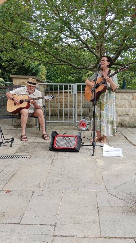 Na kytaru ji doprovázel její přítel, a společně vytvořili srdečnou atmosféru plnou krásných melodií. Slunečné počasí nám přálo, a tak si klienti mohli koncert užít pod širým nebem.