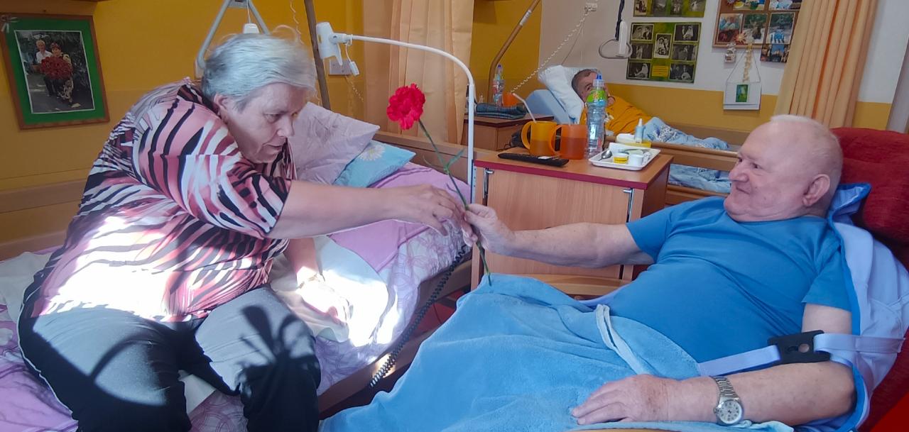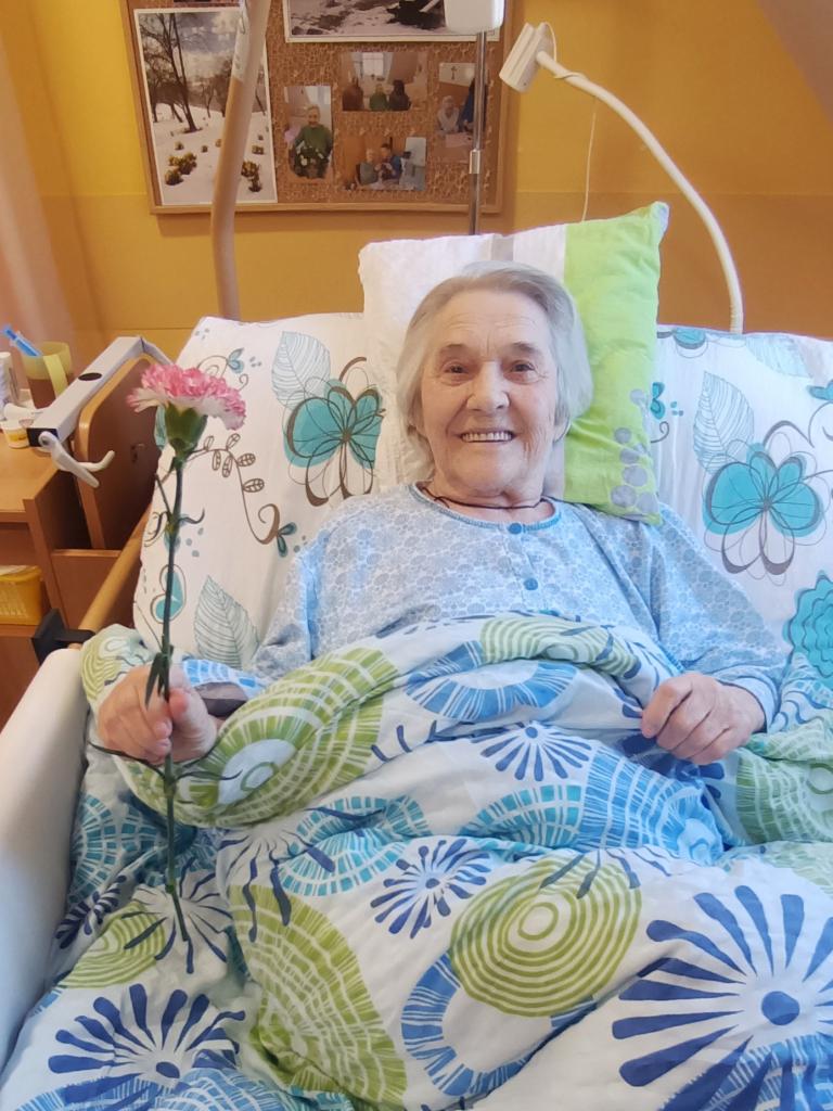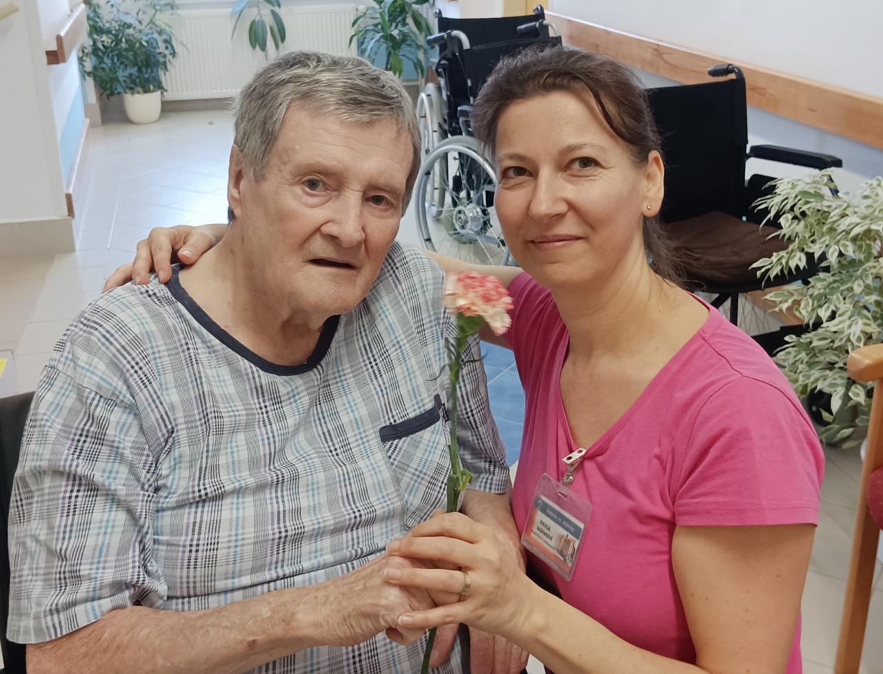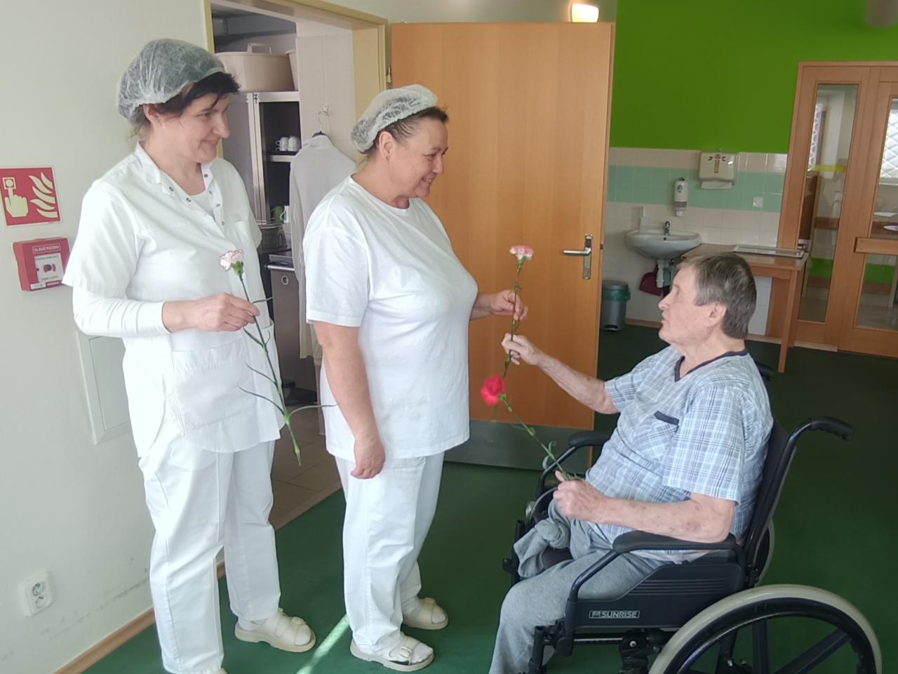 Letos jsme Mezinárodní den žen oslavili o den dříve. Naši dva pánové prošli celý Domov a všem přítomným ženám popřáli k MDŽ a předali jim krásný karafiát.