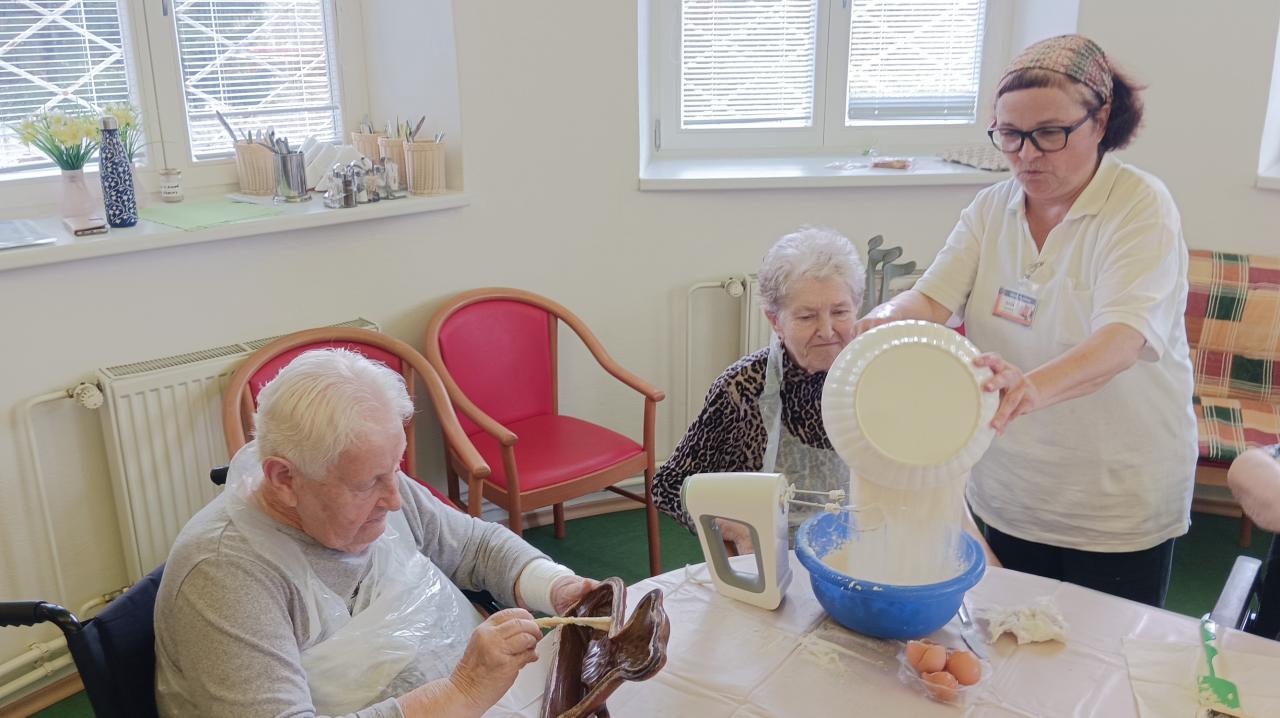 Pečení velikonočních beránků se v našem Domově stalo tradicí. Letos jsme se do pečení pustili již ve středu 16. dubna. Klientky, dobrovolnice a kuchařky pracovaly jako jeden tým, a tak odpoledne byli všichni beránci hotoví a dozlatova upečení.