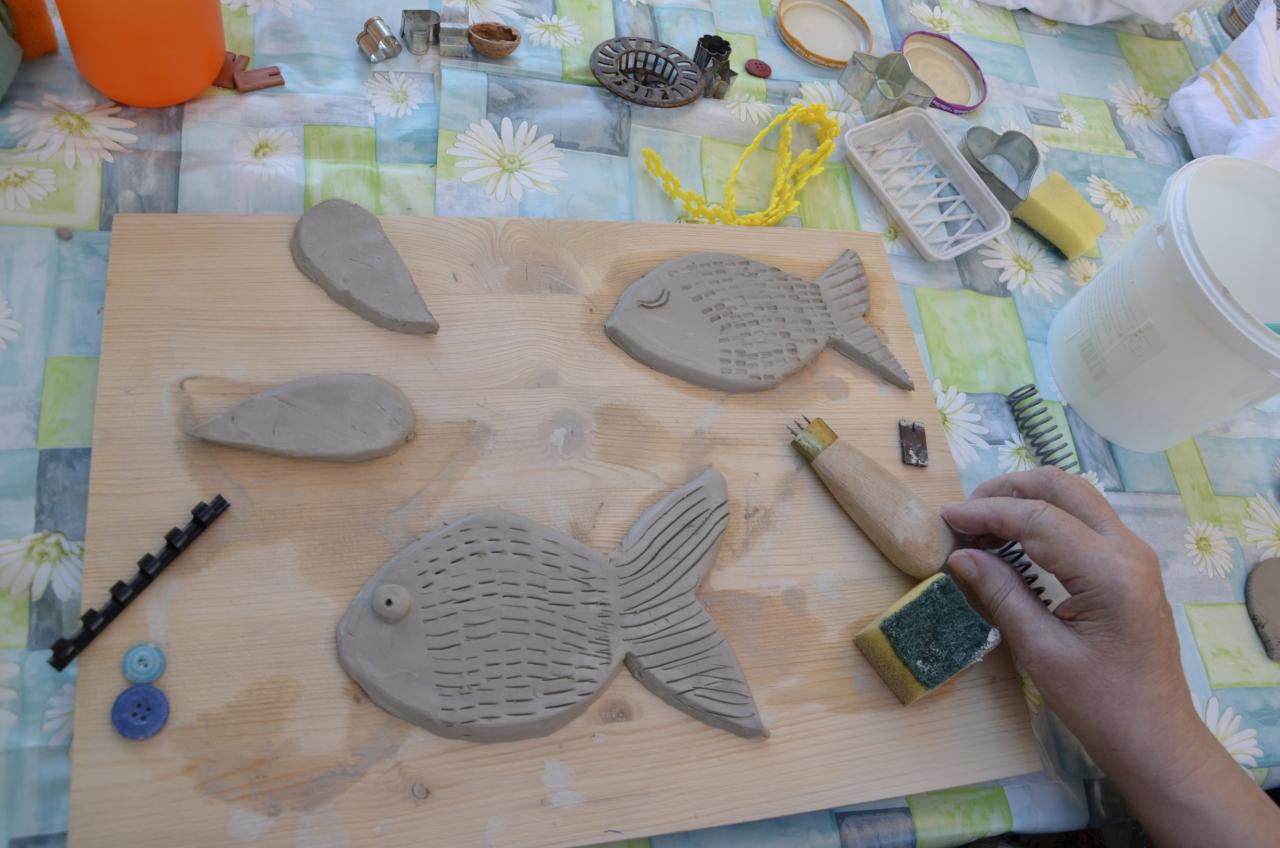 V pátek 14.7. jsme se opět pustili do vyrábění z keramické hlíny. Z mnoha stran jsme se doslechli, že se lidem líbí naši keramičtí ptáčci a rybičky. Rozhodli jsme se tedy pro jejich další výrobu.